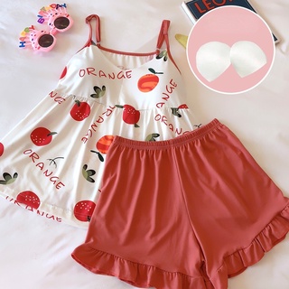 Bộ Đồ Ngủ Áo Hai Dây Và Quần Ngắn Bằng Lụa Mát Họa Tiết Hoa Gợi Cảm Thời Trang Mùa Hè Mới Cho Nữ