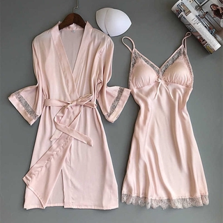 Set áo choàng và đầm ngủ hai dây satin bóng cho phái nữ