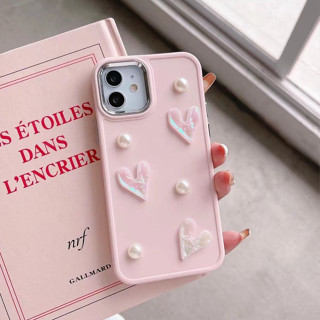 Ốp Điện Thoại Màu Trắng Sữa Đính Trái Tim Nhỏ Xinh Cho iPhone 11promax 11 Pro XS / X XSMAX 7 / 8 7P / 8P 6 / 6S