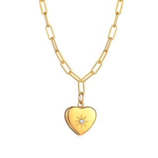 Vòng cổ mặt hình trái tim đính đá màu vàng trơn thiết kế tối giản