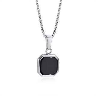 Vnox Vòng cổ Mặt Đá Đen Hình Vuông Đơn Giản Cho Nam