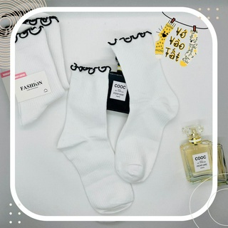 VỚ TẤT NỮ CỔ CAO TRUNG TRẮNG VIỀN BÈO NHÚN ĐEN