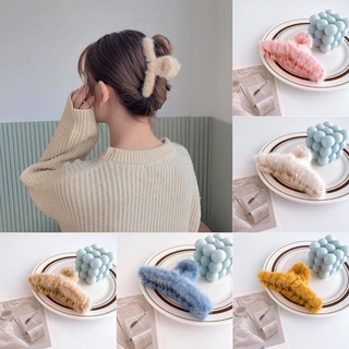 Kẹp tóc càng cua bằng nhựa acrylic phối lông phong cách Hàn Quốc dành cho nữ