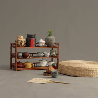 Kệ Tre 3 tầng để trưng bày để ấm trà, hủ trà, tách chén, chế tác thủ công, mẫu nhỏ gọn, Tao Nhã, phong cách Cổ phong.