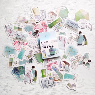 Hộp 38 Nhãn Dán Retro Sticker Trang Trí Hàn Quốc