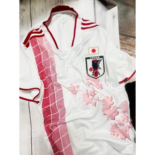 Set bộ quần áo thể thao bóng đá nam nữ nhật bản áo trắng hoa anh đào quần đen 2022 2023 vải gai thái