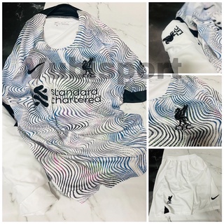 Set bộ quần áo thể thao bóng đá nam nữ vải gai mịn clb liverpool sân khách áo trắng 3d quần trắng logo thêu đầy đủ 2022