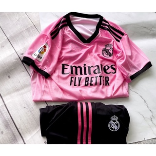 Set bộ quần áo thể thao bóng đá vải gai thái clb real áo hồng quần đen 2023