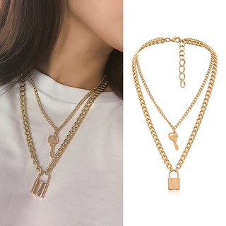 Vòng Cổ Nhiều Lớp Mặt Ổ Khóa Màu Vàng / Bạc Dành Cho Phụ Nữ