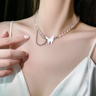 Dây chuyền chuỗi bạc hạt tròn mặt hình bướm thanh lịch cá tính thời trang Hàn Quốc