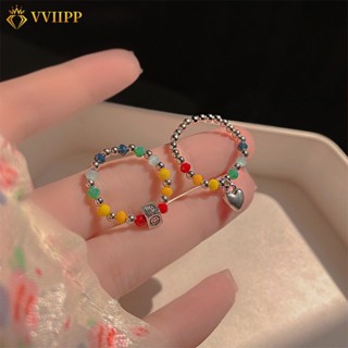 Nhẫn Bạc Đính Hạt Nhiều Màu Sắc Co Giãn Tốt Dành Cho Nữ