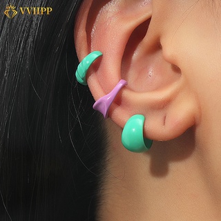 Set 4 kẹp tai nhựa dáng tròn nhiều màu sắc kiểu Hàn Quốc