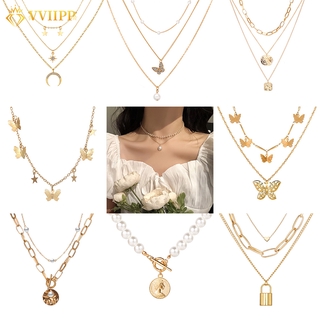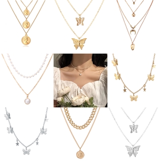 BUTTERFLY vòng cổ Nhiều Lớp Mặt Bướm Và Ngọc Trai Thời Trang Cho Nữ