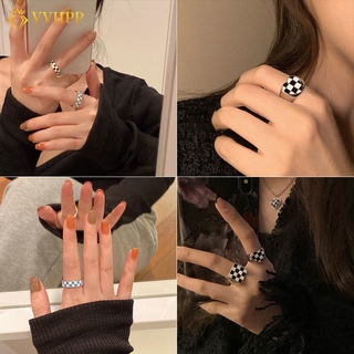 Nhẫn Hình Trái Tim Họa Tiết Caro Trắng Đen Thời Trang Cho Nữ