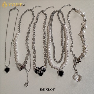 Dây chuyền mặt trái tim phối ngọc trai nhân tạo tua rua màu bạc tinh xảo phụ kiện trang sức cho phái nữ