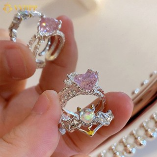 Nhẫn Hở Hình Trái Tim Đính Đá Opal Phong Cách Hàn Quốc Cho Nữ