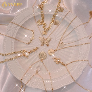 Set 6 dây chuyền mặt hình bướm/bông hoa màu vàng thời trang Hàn Quốc dành cho nữ