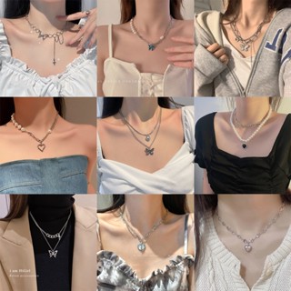 Set 2 Vòng cổ Bạc Mặt Hình Trái Tim/Bướm Thời Trang Cho Nữ