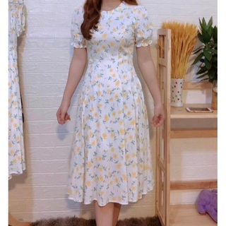đầm thiết kế cổ vuông tay bồng chất lụa cao cấp(số chốt trên live)