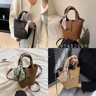 Túi Hơ mess QC + túi + khăn khoá chữ H bản mới nhất kèm dây đeo chéo