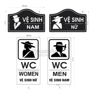(Chọn mẫu) Biển báo WC, decan dán fomec 3mm WC Nam Nữ (Toilet woman/men) KT 20 x 10 cm, nhận gia công số lượng lớn
