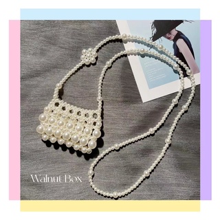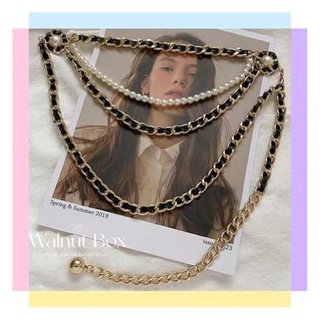 Túi Nữ Đeo Thắt Lưng Mini Phối Chuỗi Ngọc Trai Thời Trang Phong Cách Hàn Quốc