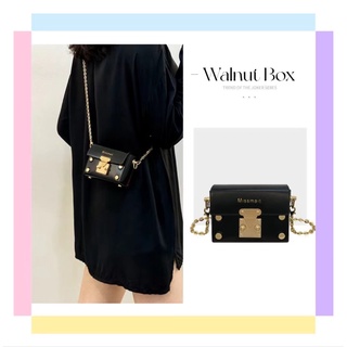 Túi đeo chéo dáng hình hộp vuông nhỏ phối dây xích đính đá thời trang hè cho nữ