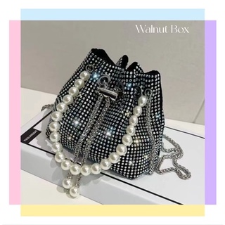 Túi Xách Bucket Đeo Vai Cỡ Nhỏ Đính Đá Phối Dây Xích Cá Tính