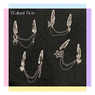 Kẹp Tóc Kiểu Dây Xích Y2K Bằng Bạc Cứng Hình Đầu Lâu/Trái Tim/Đầu Lâu Ngọt Ngào Cho Nữ