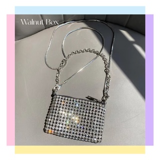 Túi Đeo Chéo Mini Đính Đá Kim Cương Phối Dây Xích Thời Trang Sang Trọng