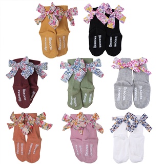 Tất Cotton Chống Trượt Đính Nơ Họa Tiết Hoa Xinh Xắn Cho Bé Gái