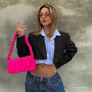 Áo Khoác Tay Dài Phối Túi Thiết Kế Đơn Giản Thời Trang Cá Tính Cho Nữ