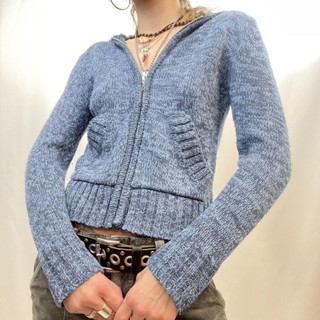 Áo Hoodie Dệt Kim Tay Dài Phối Khóa Kéo Thời Trang Cho Nữ