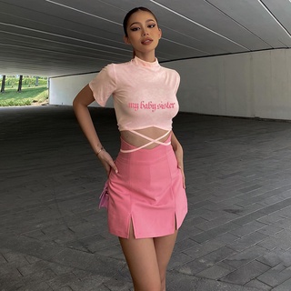 Áo Thun Ngắn Tay Cổ Tròn In Chữ Cá Tính Theo Phong Cách Đường Phố Dành Cho Nữ