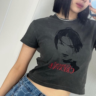 Áo Thun Tay Ngắn Cổ Tròn In Họa Tiết Chân Dung Thời Trang Cá Tính Cho Nữ