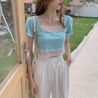 Áo Thun Cổ Vuông Cột Dây Phong Cách Hàn Quốc Ngọt Ngào Thời Trang Mùa Hè Cho Nữ