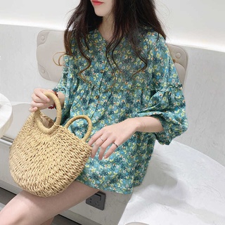 Áo Sơ Mi Tay Lửng Dáng Rộng Họa Tiết Hoa Thời Trang Mùa Hè Hàn Quốc Cho Nữ