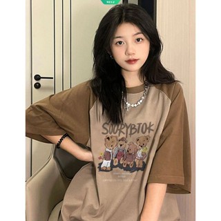 Áo Thun Cotton Tay Ngắn Dáng Rộng In Hình Gấu Thời Trang Mùa Hè 2023 Y2k