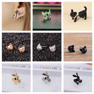 Hoa tai thời trang nữ xỏ mèo đơn chiếc thép titan mạ kim loại sơn tĩnh điện