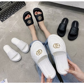Dép nữ bánh mì/quai ngang đính GG, đế đúc nguyên khối cao 3cm-1000020
