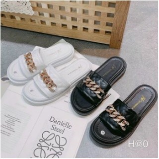 Dép Nữ Sandal quai ngang dây xích mạ vàng, giả đính đá - đế bánh mỳ - New trend 2022-1000002
