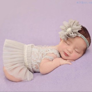 Bộ Áo liền quần Viền Ren + Gối + Nón Dùng Chụp Ảnh Cho Bé Sơ Sinh