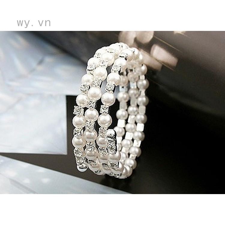 Vòng tay đính hạt ngọc trai và kim cương nhân tạo sang trọng