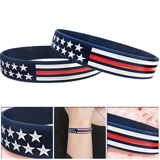 1 Vòng Tay Cao Su Silicone Mỏng Hình Cờ Mỹ
