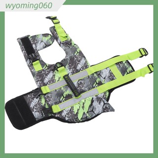 Wyoming060 Áo phao cho chó phản quang có thể điều chỉnh thú cưng tay cầm cứu hộ để bơi chèo thuyền