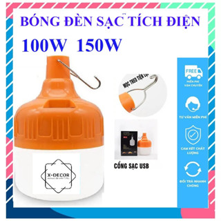 Đèn sạc tích điện siêu sáng 100W-150W cổng USB có móc treo - Bóng đèn Led không cần dây 150w chịu nước quai treo