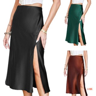 Xiangbao Chân Váy Midi Dài Lưng Cao Xẻ Tà Bằng Satin Mặc Khi Đi Tiệc Tối Công Sở Giản Dị