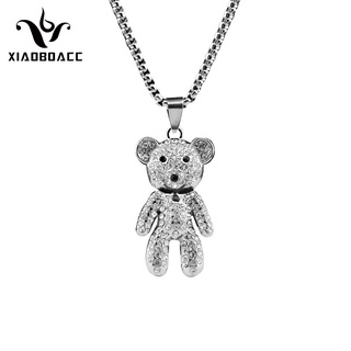 Vòng cổ XIAOBOACC bằng thép không gỉ mặt dây hình gấu đính đá kim cương giả thời trang cho nam và nữ