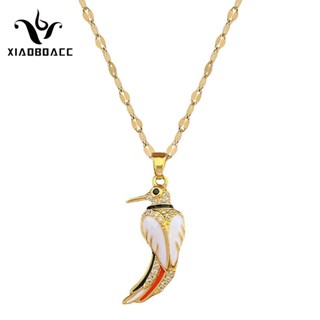 XiaoboACC Dây Chuyền Thép Titan Mặt Hình Chim Gõ Kiến Đính Đá Zircon Dầu Cho Nữ