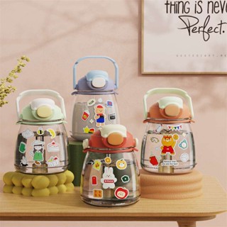 bình nước cute ly thủy tinh có nắp bình giữ nhiệt băng keo thể thao 1300ml Chống Tràn Kèm Ống Hút In Hình Hoạt Hình Dễ Thương Cho Bé